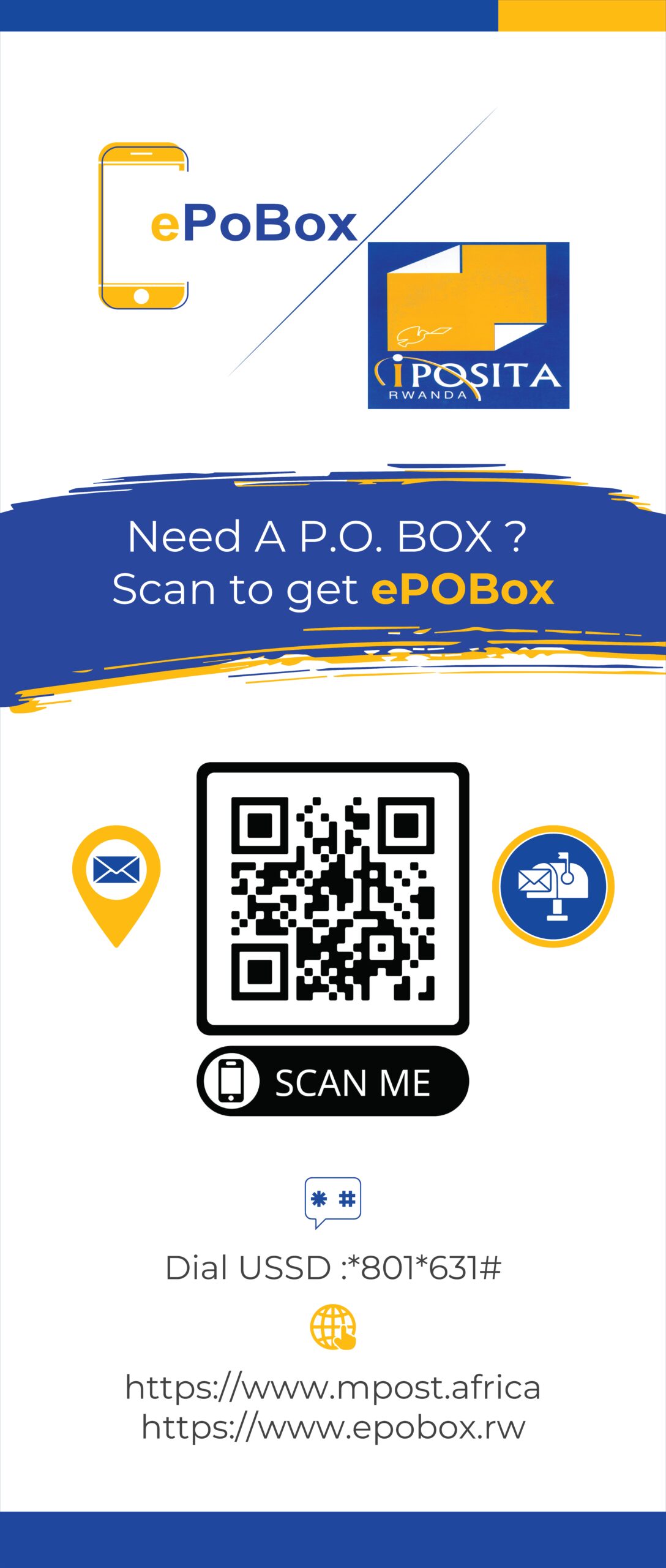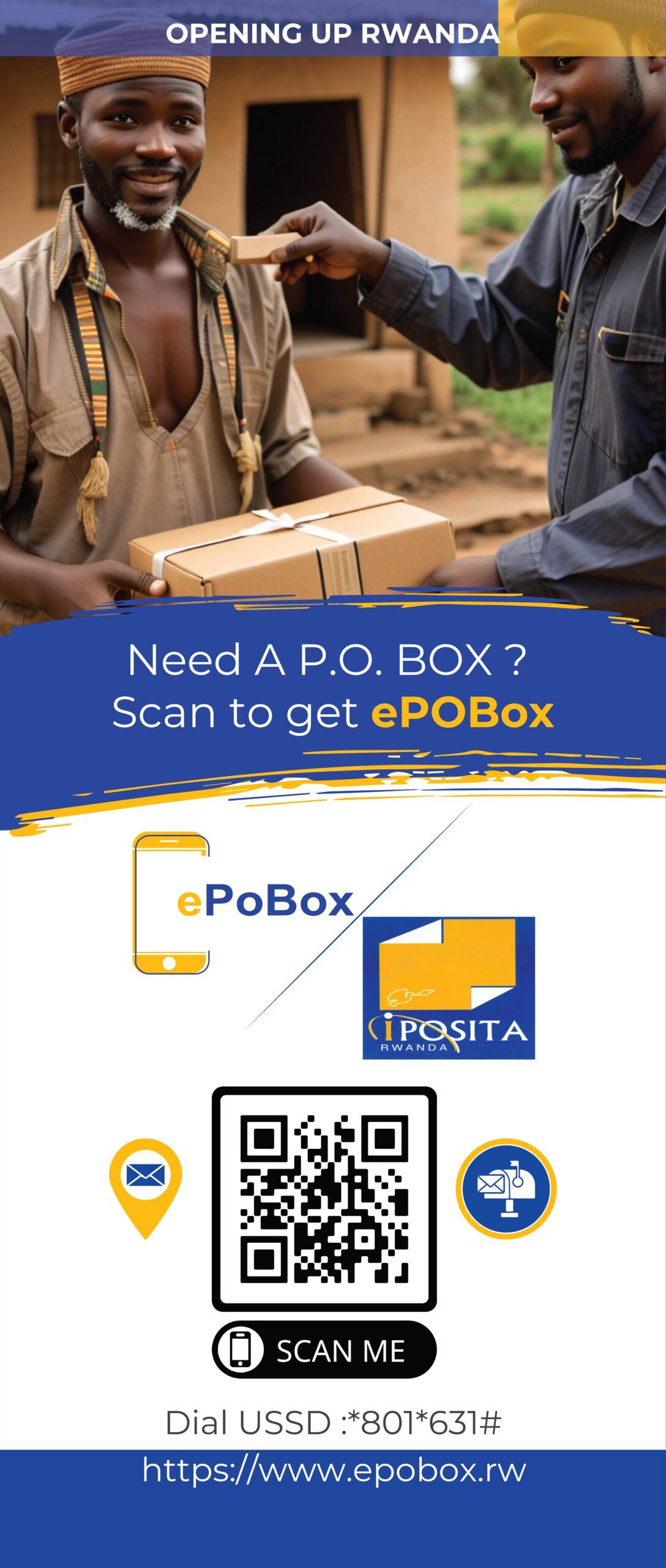 ePoBox Rwanda is transforming your mobile number into a reliable postal address! Get your parcels and mail delivered across Rwanda in real time and intact. Fast. Secure. Effortless.