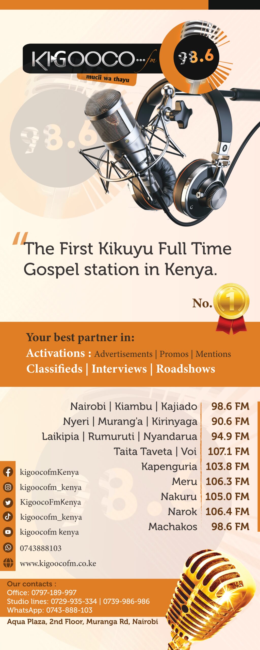 Kigooco FM is a Christian radio station that broadcasts in Kikuyu. We set the trend on biblical understanding and promoting Christian values and practices.